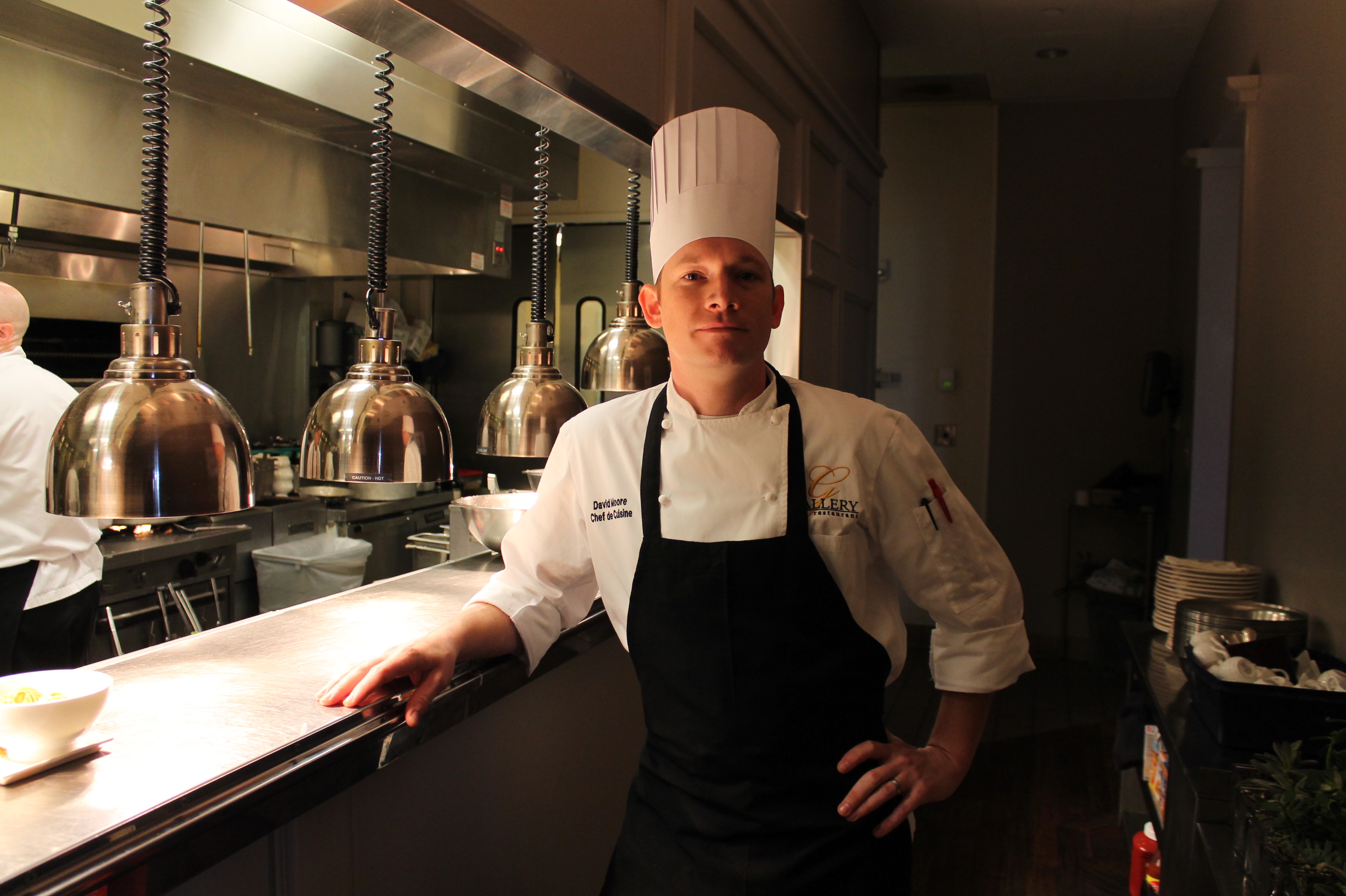 David Moore, chef de cuisine at the Ballantyne Hotel & Lodge in Charlotte, stands in the kitchen of Gallery restaurant at the hotel. photograph by Hope Yancey
