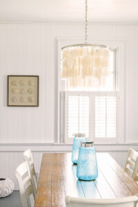 So named for a favorite camellia and painted in shades of its likeness, this summer home was loved and preserved by the Pipkin family for four generations. It’s crammed with mementos — a vintage life preserver, a classic M. Charles seascape, and the original house plans signed by renowned North Carolina modernist architect Edward Lowenstein. Authentic juniper paneling and cabinetry was harvested from lower Currituck County by the team of Spruill & Perry. Being at the house deepens the experience: At daybreak, expect to find deer tracks in the dunes and see gull prints where the surf licks the shore. By afternoon, balmy summer winds flow through the bedroom wing, breezing through clerestory windows and into the living spaces on their way through the screened porch and seaward.