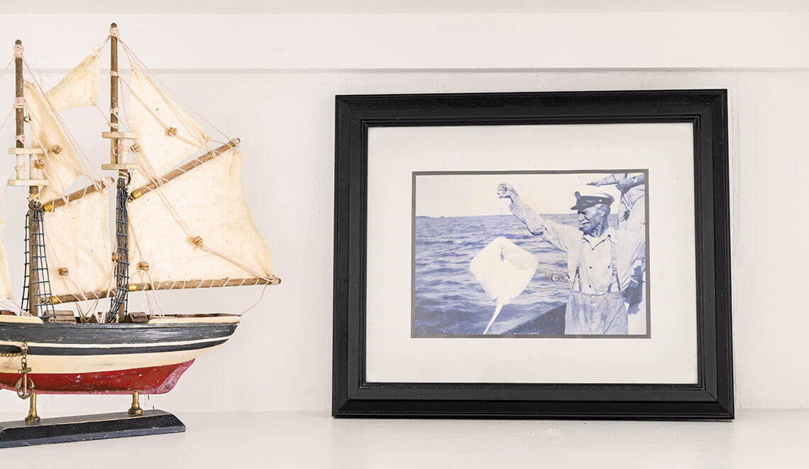 Captain Charlie (pictured with a stingray) was the keeper of the Cape Fear Lighthouse for 30 years in the early part of the 20th century. photograph by Emily Chaplin and Chris Council