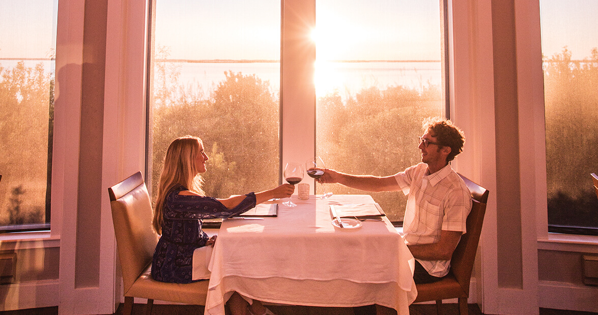 “Seaside steakhouse chic” sums up Kimball’s Kitchen in just three words. Maybe “seafood steak sunset” is better. Or “Make reservations today.” However you describe it, Kimball’s Kitchen, at The Sanderling Resort in Duck, is elegant from the instant you walk through the door to the sad moment you put down your dessert spoon. The food — steak, local seafood, and a decadent selection of raw oysters — is good enough to bring you back, but the sound view will keep you talking about your meal here. One wall of the dining room is curved, a sweeping set of floor-to-ceiling windows that bring the Currituck Sound tableside. You’ll find that the pace of your meal slows a bit as sunset comes on. The glint and gleam of light on water draws diners’ attention, and conversations acquire a reverent hush. It creeps into the open kitchen as chef and line cooks alike steal glimpses, and servers take a long, restorative look before the room resumes its pre-show pace.