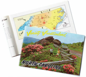 Variety Vacationland booklets advertised North Carolina’s “three major vacation areas” — the mountains, Piedmont, and coast — as well as the ease with which the state could be accessed and traversed. photograph by Matt Hulsman