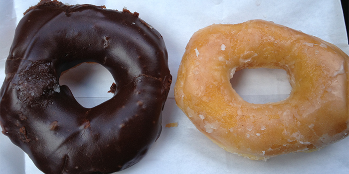 The chocolate dip is my favorite. It is a delicate, raised doughnut that is glazed and then dipped in a sweet chocolate frosting. It simply melts in your mouth as you’re eating it. The plain glaze challenges Krispy Kreme’s classic. This doughnut has exactly the right amount of sweetness.