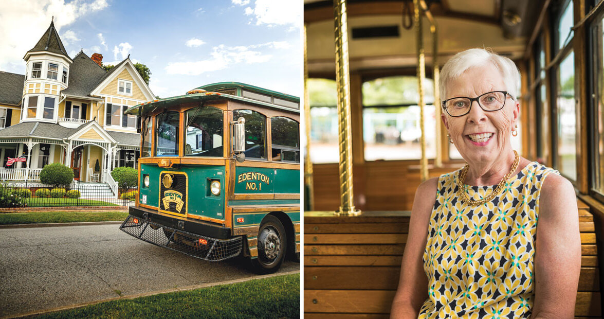 On Sharon Keeter’s first trolley tour in Edenton 20 years ago, she had just one passenger. And the woman didn’t even listen. “She hung her head out of the trolley the whole time I was speaking, and she was waving at people like she was in the Christmas parade,” Keeter says.