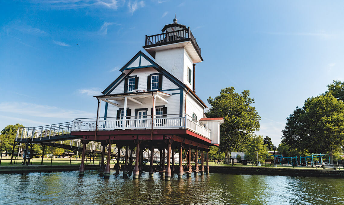 Roanoke River Lighthouse. Built in 1886, this lighthouse once guided ships from the Albemarle Sound to the Roanoke River. Today, the two-story structure is furnished as it would have been when the lightkeeper lived there.