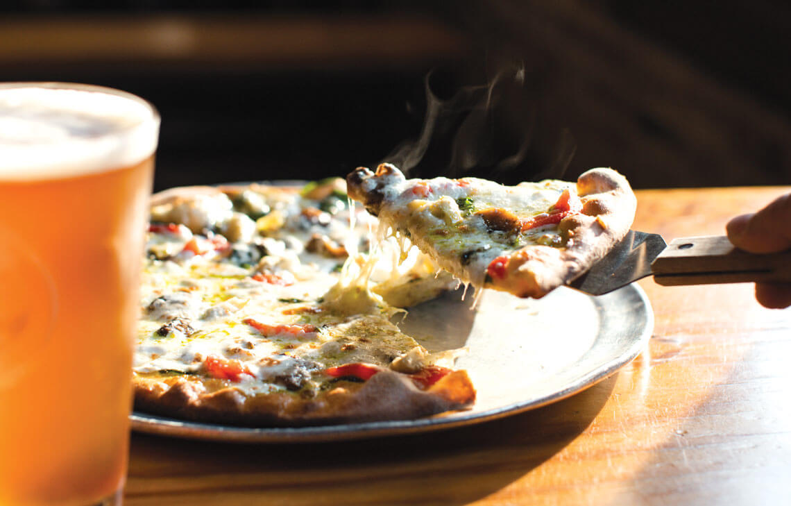 Pizza and beer at Angry Troll Brewing. photograph by Revival Creatives