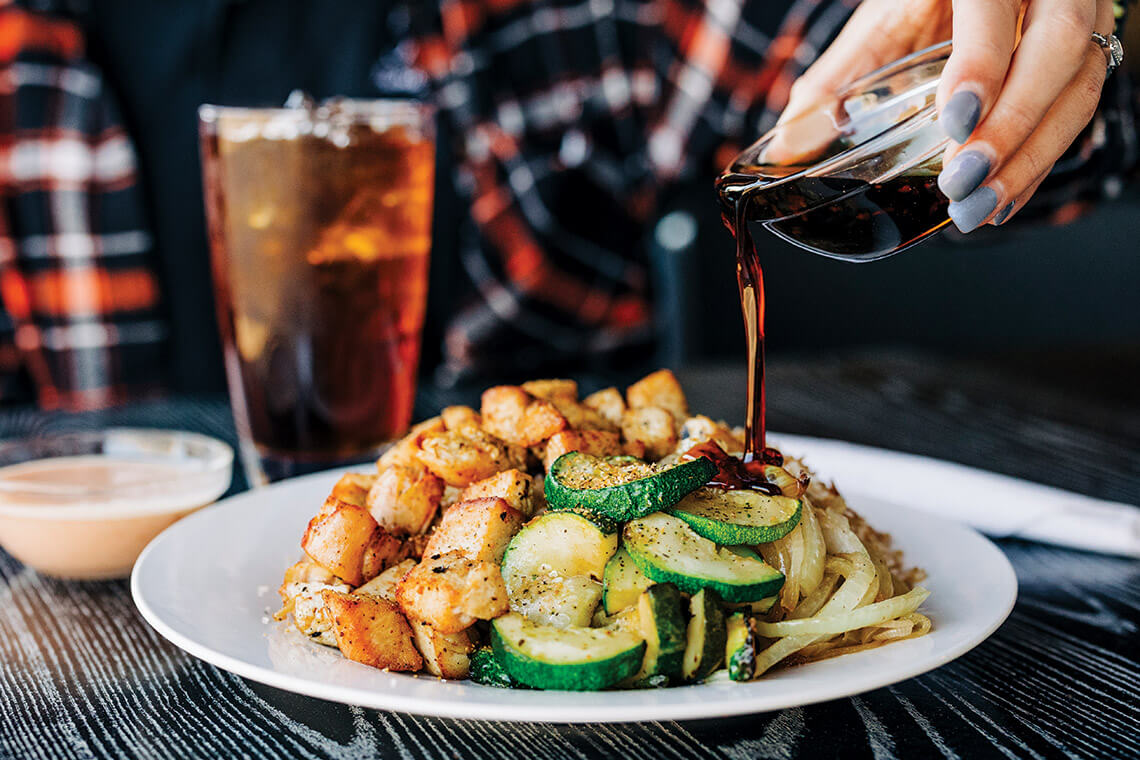 Try a teriyaki bowl with homemade fried rice, chicken, zucchini, and onions at Fore’s Family Restaurant.<br><span class="photographer">photograph by Matt Ray Photography</span>
