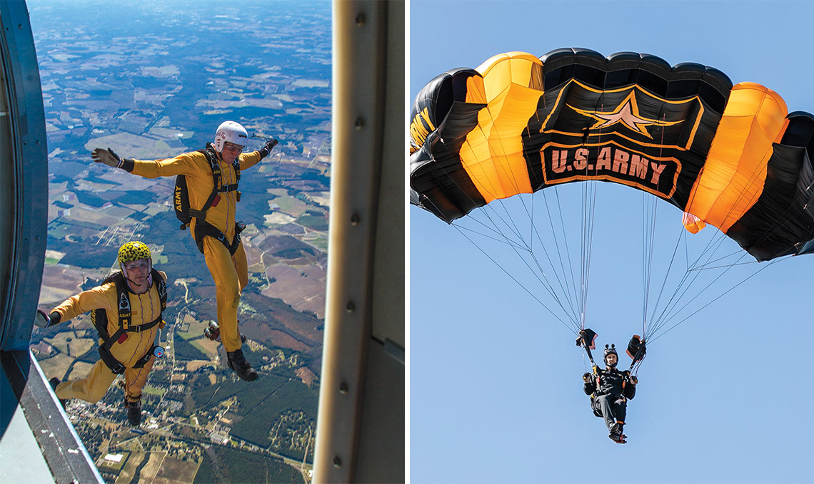 If you’re lucky, you might catch a glimpse of the Golden Knights practicing at the airport, their main training facility. photograph by MEGAN HACKETT/DVIDS, U.S. ARMY PHOTO BY STAFF SGT. DAVID MEYER, 49TH PUBLIC AFFAIRS DETACHMENT/RELEASED. THE APPEARANCE OF U.S. DEPARTMENT OF DEFENSE (DOD) VISUAL INFORMATION DOES NOT IMPLY OR CONSTITUTE DOD ENDORSEMENT.