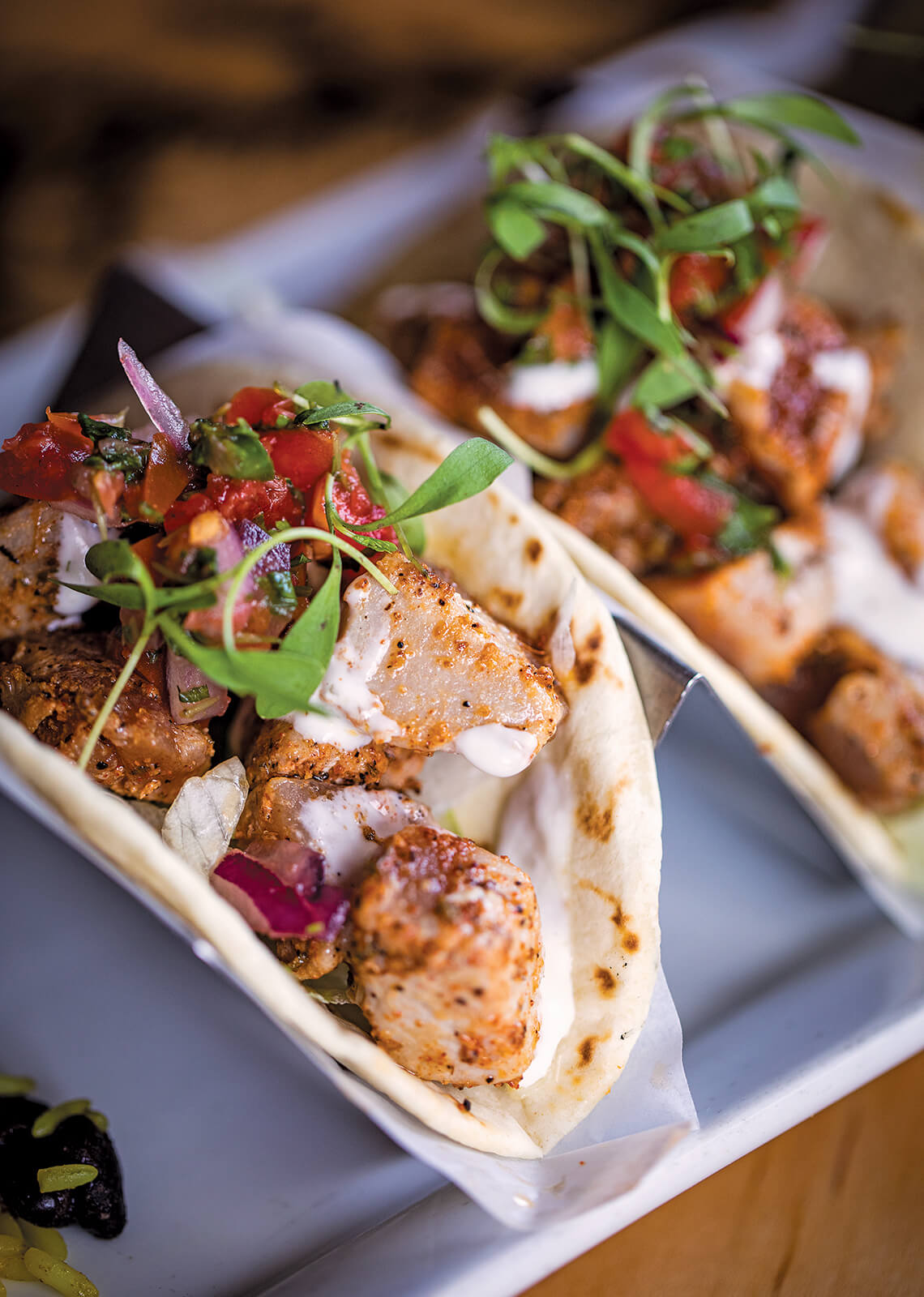 Avenue Waterfront Grille. Owners Thomas and Maria Williamson buy only local seafood, and many of their other ingredients are sourced locally, too. Chef Thomas’s years of experience in the fine-dining industry, combined with Maria’s passion for healthy foods, has resulted in an eclectic, seasonal menu featuring everything from butter-broiled crab cakes and steaks to burgers and pizza, plus several gluten-free and vegetarian options.