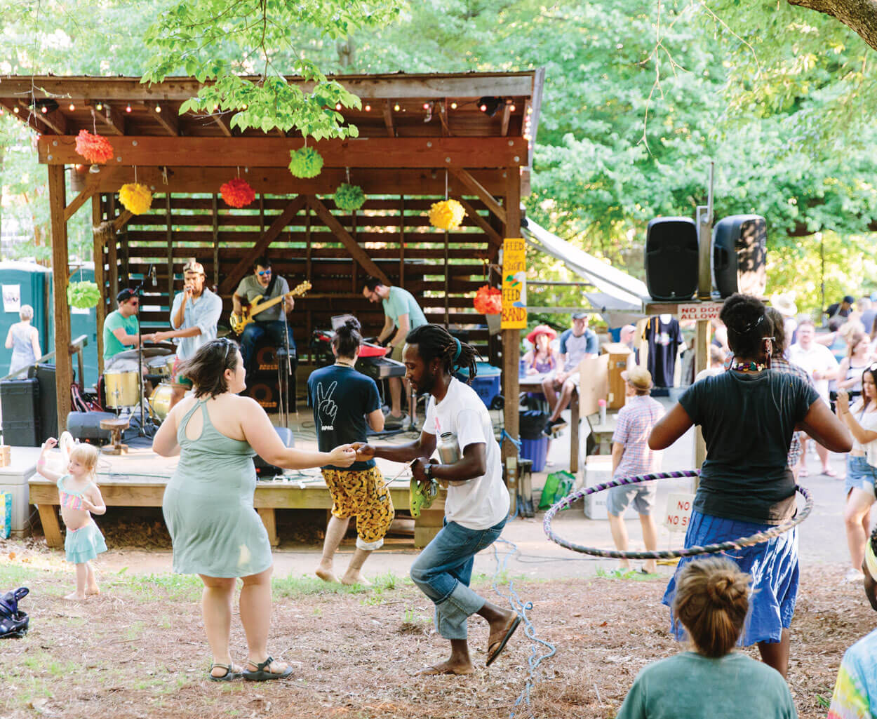 Saturdays in Saxapahaw are full of festivities that inspire wonder among children and adults alike: In the summer, a spirited weekly farmers market and live music series combine to create a perfect evening by the river. There’s never been a better excuse to pack a picnic. photograph by Anagram Photo