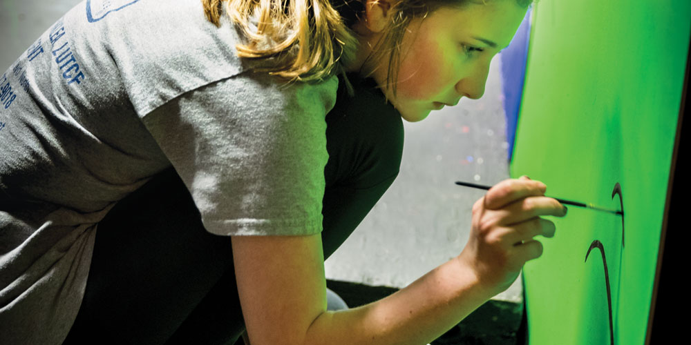 Sydney Mitchell preps scenery for a youth theater production at the Arts Council downtown. photograph by Charles Harris