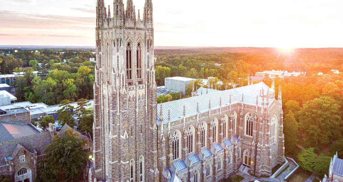 For Duke, the chapel is central. Walk up the long Chapel Drive approaching Duke’s Gothic West Campus, and the chapel dominates the landscape, its stone tower piercing the sky like Dorothy’s first view of the Emerald City. That’s exactly its goal, by the way. When, in 1924, James Buchanan “Buck” Duke gave all that money to turn Trinity College into Duke University, he had a very clear vision. “I want the central building to be a church,” he said. “A great towering church which will dominate all of the surrounding buildings, because such an edifice would be bound to have a profound influence on the spiritual life of the young men and young women who come here.”