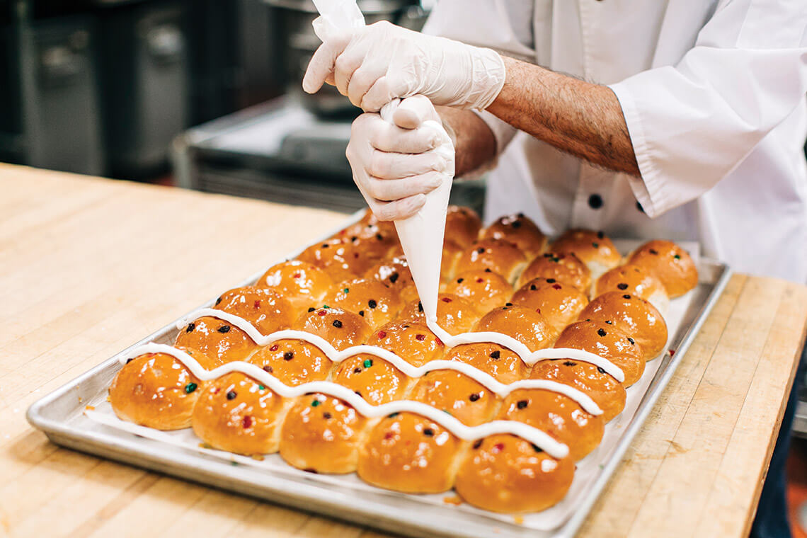 The scent of nutmeg and cinnamon marks the beginning of Lent at Apple Annie’s Bake Shop in Wilmington. The spices are key ingredients in the bakery’s recipe for hot cross buns, which Jamy Giufurta, the shop’s head baker, has been making the same way for 35 years. Many customers have standing weekly orders for the buns in the 40 days leading up to Easter, and the shop’s team loves to be a part of the holiday’s traditions. “Creating these memories at home with your family is so important,” says Krissy Mingia, head of marketing. “We feel honored that we’re able to be a part of [these celebrations] for so long, for so many people’s whole lives.” — Rebecca Woltz