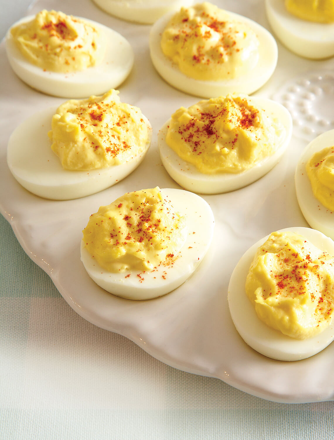 Pull up a chair! In North Carolina, Easter spreads often include superstars of the Southern potluck: sweet tea, savory ham, perfect potato salad, and deviled eggs. Lots of deviled eggs. photograph by Matt Hulsman