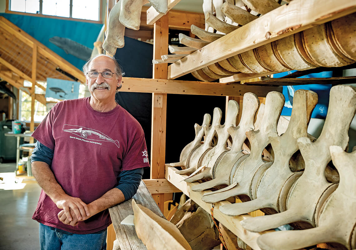 “All of these bones — every animal in here — has a story to tell,” Rittmaster says, “and it’s a story that needs to be heard.” He points to the lower jaw of a right whale. “I want you to put your hands on these, because where else can you do this? This is one of the most endangered large whales on Earth, and it lives off of our coast.”