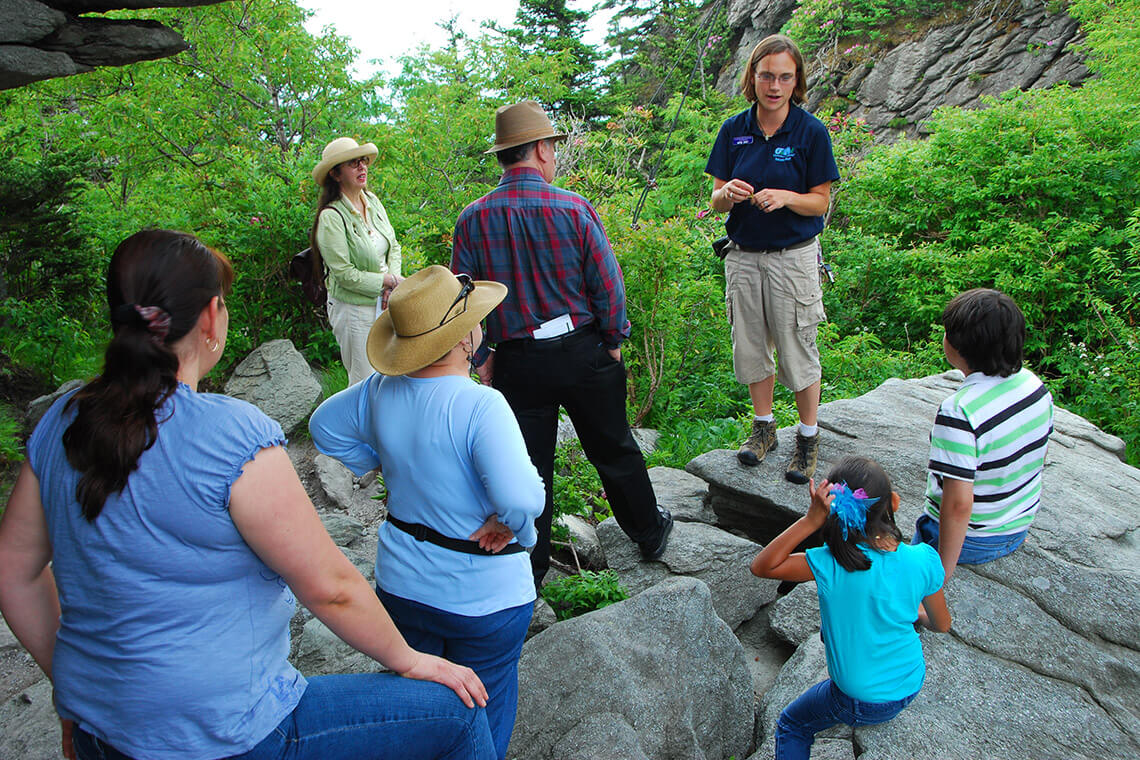 Ramble with a naturalist on the Bridge Trail. Photography courtesy of Grandfather Mountain Stewardship Foundation