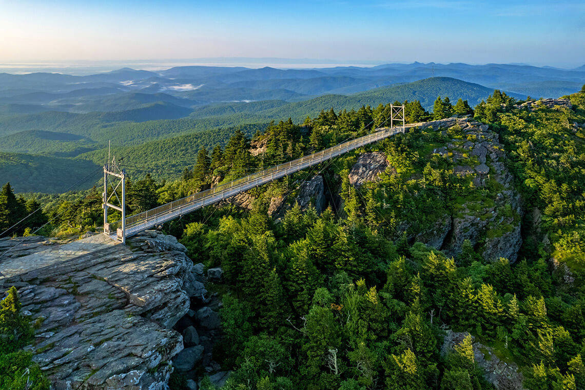 Grandfather Mountain’s iconic Mile High Swinging Bridge offers sweeping views of the Blue Ridge. photograph by Todd Bush