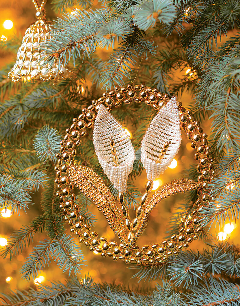 The Flowers of Faith Calla Lily is an advanced Christian Symbols pattern. These ornaments are intended to be made during Bible study. photograph by Jerry Wolford & Scott Muthersbaugh
