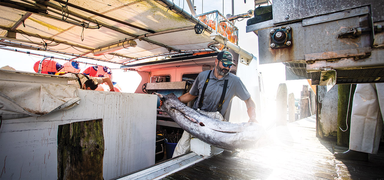 For David Shields, owner and captain of the fishing boat Hardway, days start early so that fish can be ready for Fresh Catch’s customers first thing in the morning. Today’s haul: swordfish. photograph by Chris Hannant