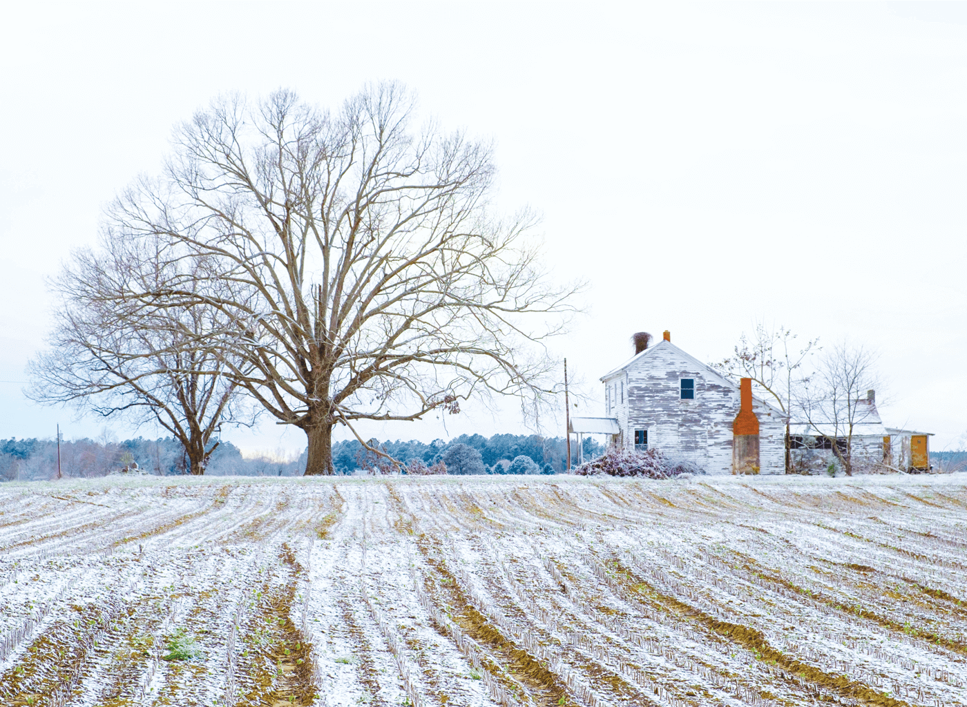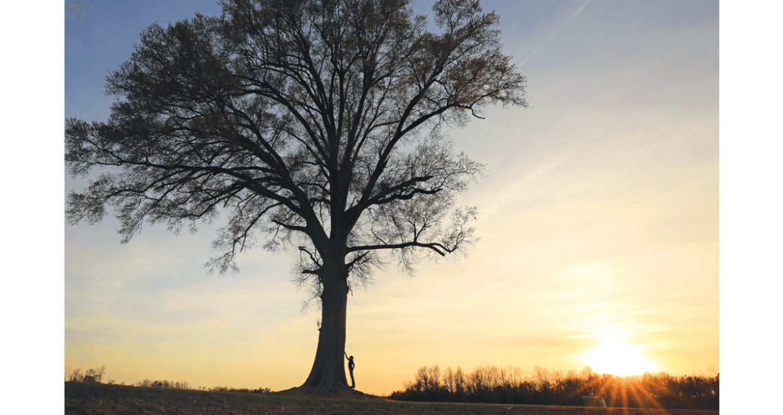 Homestead trees invite us to imagine the families that may have grown up alongside them. On wide-open fields in Nash County, an oak tree and a pecan tree had plenty of room to spread their branches. photograph by Sean Larkin