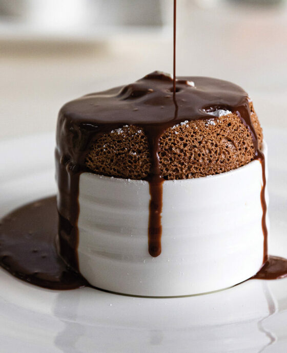 Although she was only at Fearrington for a year, Edna’s legacy is on display at the end of each meal. The Valrhona Cœur de Guanaja Soufflé that she created with Jenny is the only dish that never leaves the menu. The soufflé, which was featured on a Gourmet magazine cover in the ’80s, found a home in Jenny’s vision. A classic dessert made with rich French dark chocolate, it exudes elegance and sophistication without pretension.