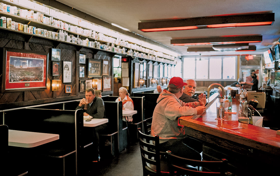 The PR’s cozy, lived-in feel is authentic — it opened in the early ’50s and has been in this location, collecting sports memorabilia; beer cans, steins, and mugs; and ever more fans, since 1961. photograph by Charles Harris