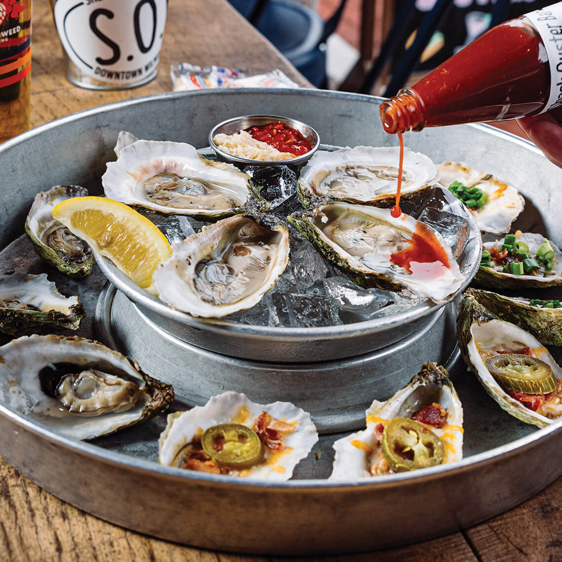 The original Shuckin’ Shack — a 900-square-foot restaurant two blocks from the ocean — opened in Carolina Beach in 2007. A second location (pictured) opened in Wilmington in 2012. Both offer oyster samplers. photograph by Matt Ray Photography