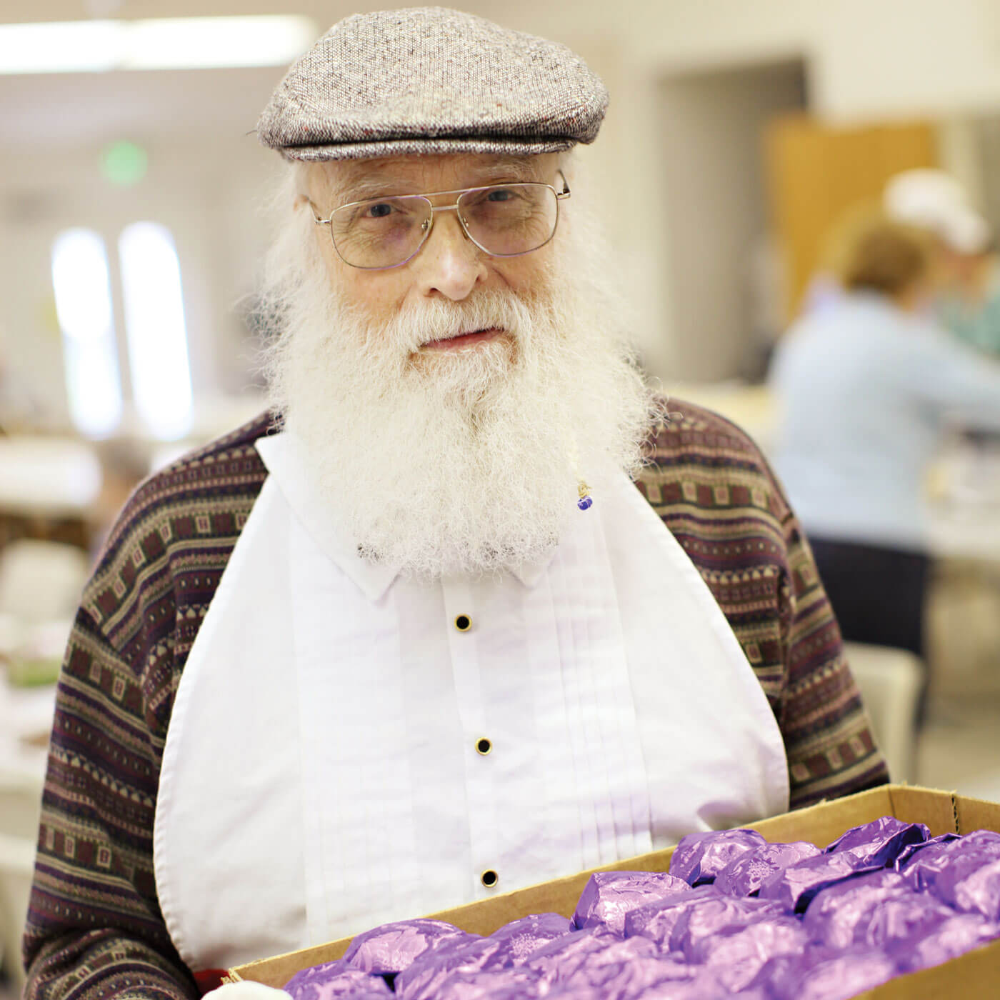 “You think, ‘The economy is bad,’ but I guess people make do for what they want,” says First Presbyterian member Rusty Sudderth. He’s one of nearly 40 volunteers, mostly retirees, who report for egg production three mornings a week for eight weeks leading up to Easter.