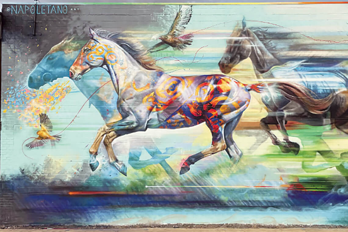 Slip on your walking shoes, and take in the sights around Moore County’s towns, such as the Harbour Place Mural in Southern Pines …<br><span class="photographer">Photography courtesy of Visit Pinehurst, Southern Pines, Aberdeen</span>