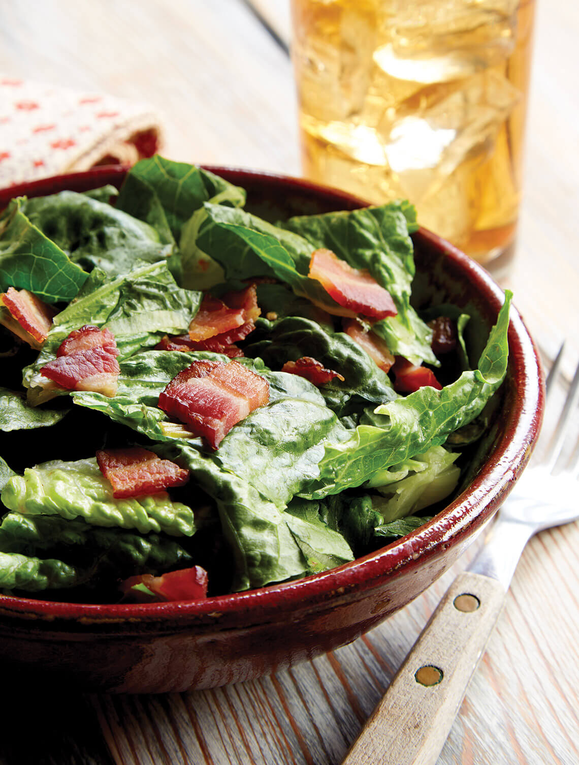 Add green onions to bacon grease; cook, stirring, for about 1 to 2 minutes. Stir in vinegar. Pour sautéed onions and bacon grease-vinegar mixture over lettuce and toss. Crumble bacon and add it to lettuce. Top with black pepper and salt to taste. Serve immediately.