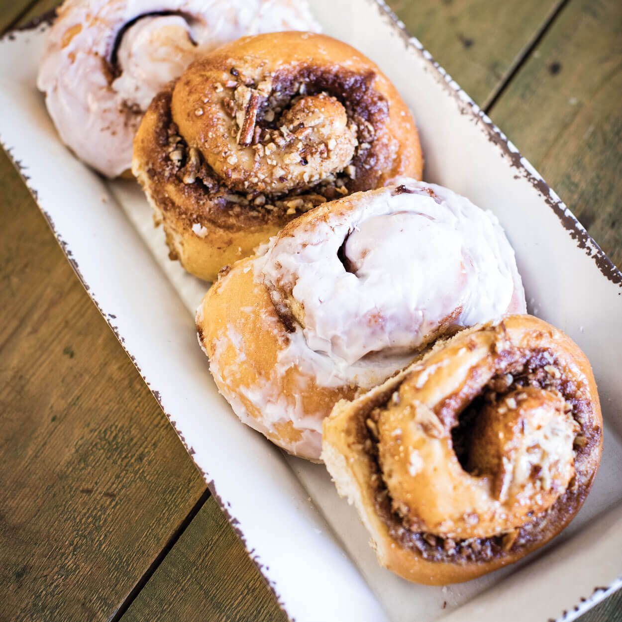 A selection of Belcross Bake Shoppe’s cinnamon buns are well-worth the trip. photograph by Chris Hannant