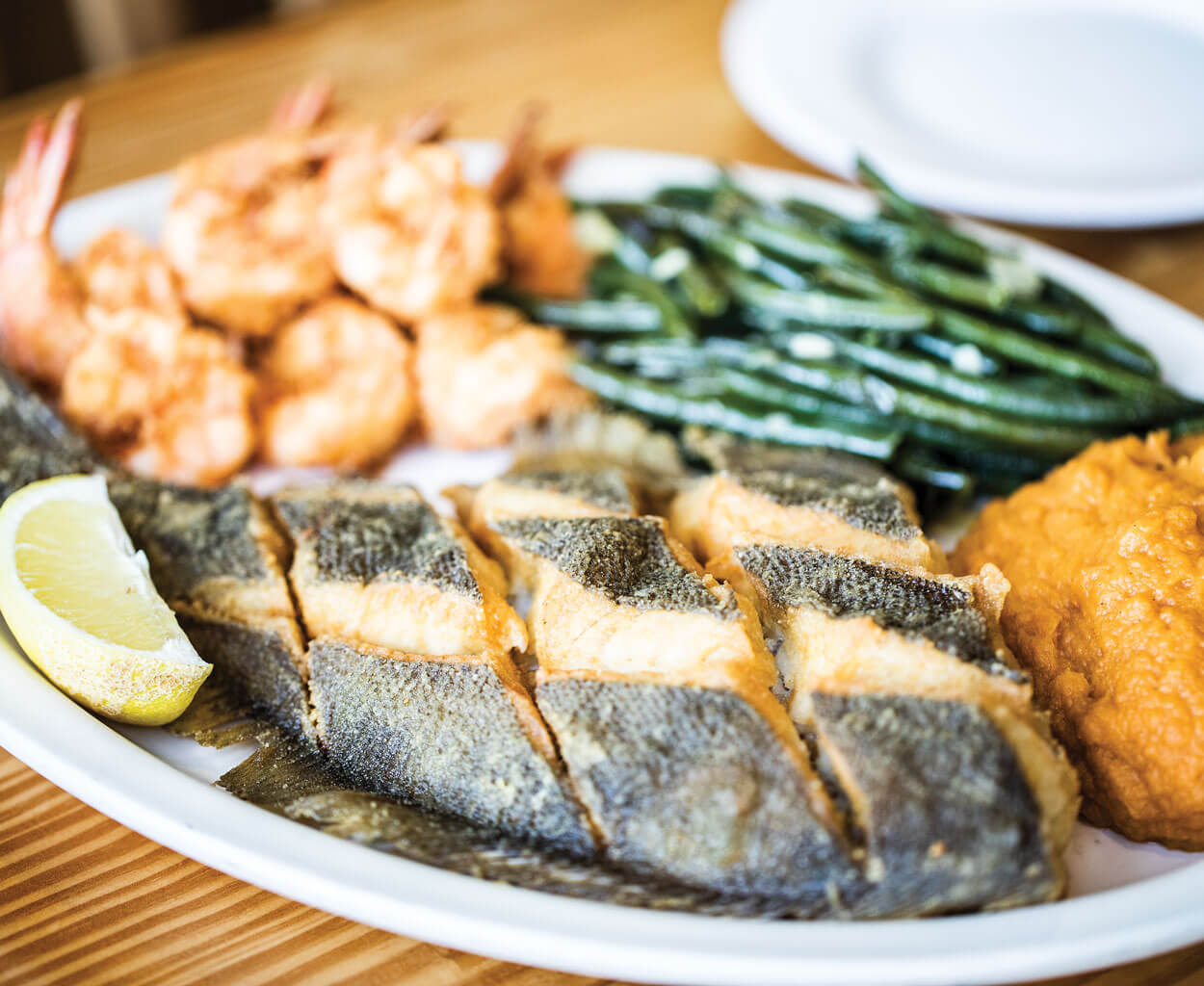 A lucky dinner guest from Virginia will enjoy fresh-caught flounder with shrimp. photograph by Chris Hannant