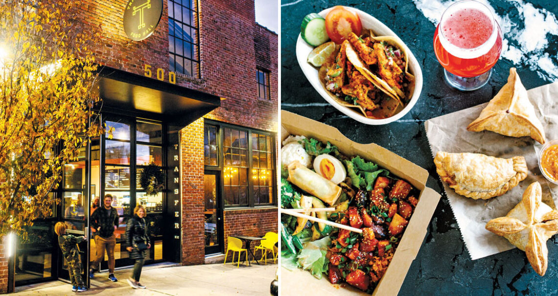 Transfer Co. is an ideal model for what the food hall movement is all about: giving local chefs and food vendors a place to shine in a spacious repurposed building. A neighborhood gets a new gathering place, and diners get a taste of the world under one roof. And sometimes that comes with a side of spectacle, too. “You can see the bagels being made, the seafood being cut,” Queen says. “We have a butcher. We have freshly made pasta.”