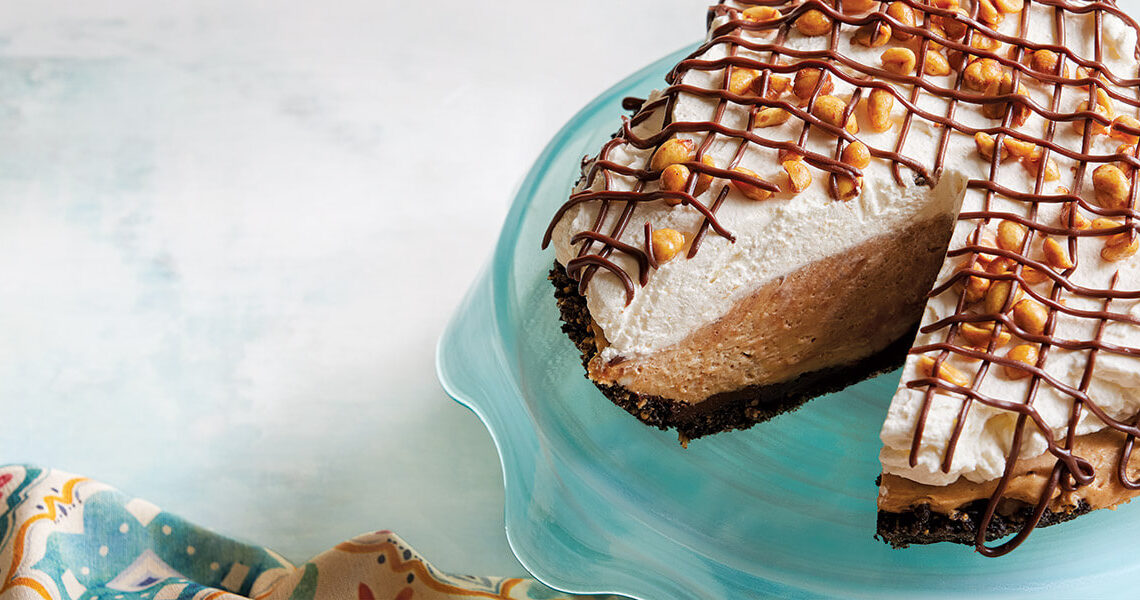 For the topping: Fold the vanilla into the reserved whipped cream. Using a spatula or pastry bag, evenly spread or pipe the whipped cream over the pie and sprinkle with peanuts.