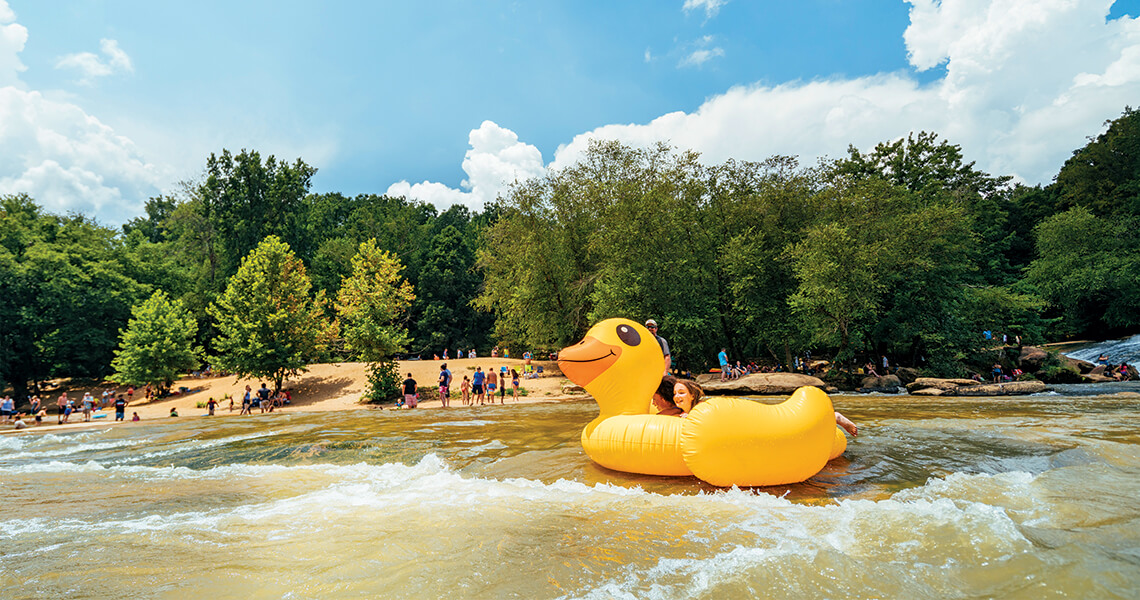 In 2010, the Town of Cooleemee launched The Great Bullhole Duck Race and Festival to help fund the park’s upkeep. The event includes food trucks, vendors, music, and hours of fun in the water. But the 15-minute duckie dash is the main attraction. “It gets bigger and better every year,” says Finney. “We have 1,500 rubber ducks, and it would be great if we could put every one of those ducks in the water. That would be our best race yet.”