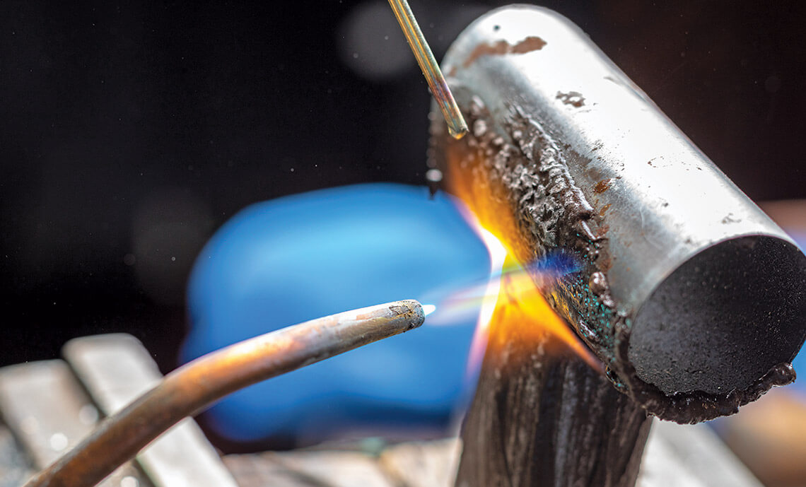 Johnson uses his torch to weld together two frame tubes.<br><span class="photographer">photograph by Jerry Wolford & Scott Muthersbaugh</span>