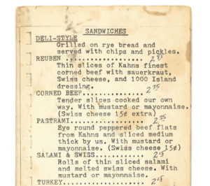 Inside, on the wall, they’ve framed an old paper menu, yellowed with age and stained with grease spatters and, well … give me just a minute on that.
