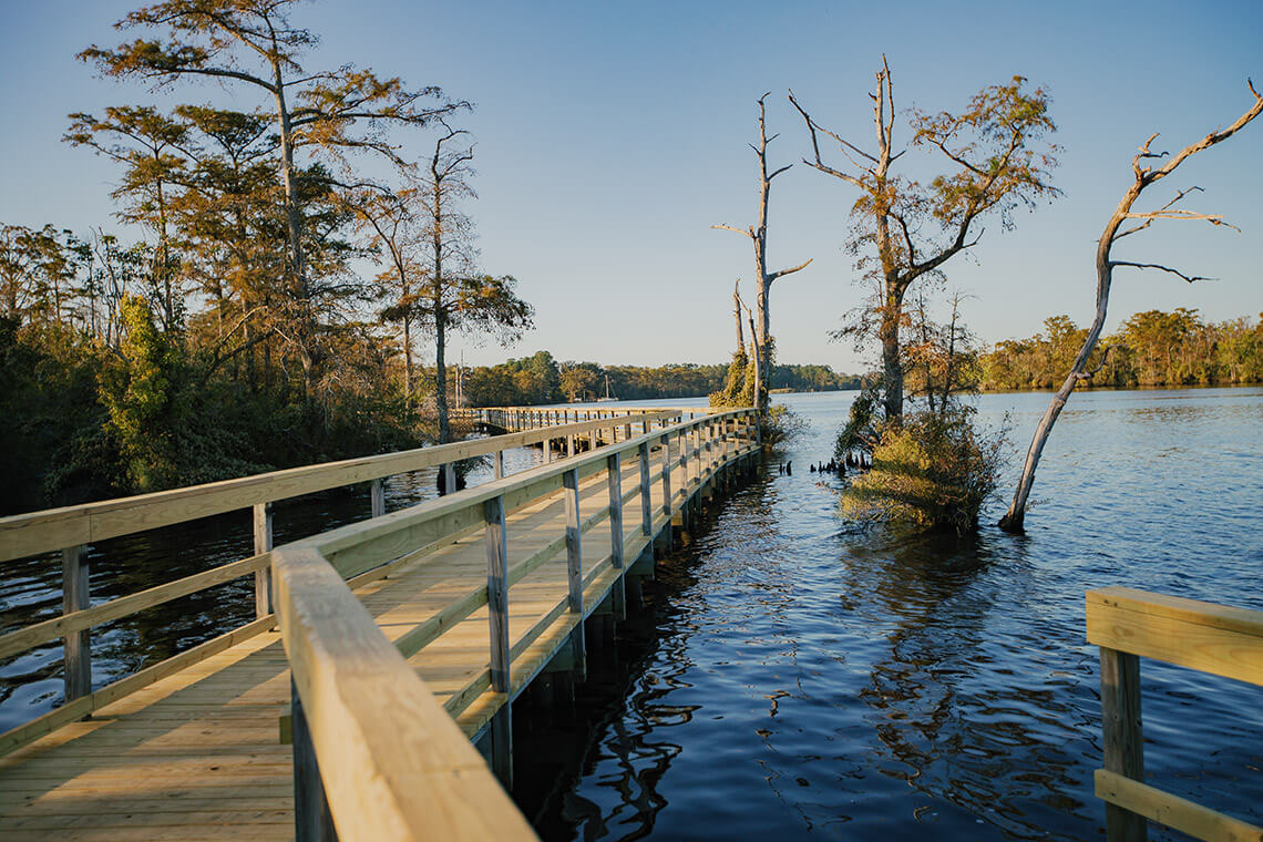 Take a stroll along the Pasquotank River on the Fenwick-Hollowell Trail. Photography courtesy of Visit Elizabeth City