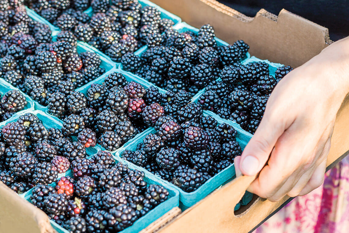 Blackberries are celebrated in a big way each July during the two-day North Carolina Blackberry Festival in downtown Lenoir. Festivalgoers can buy the fruit directly from a farmer, stain their fingers purple as they participate in blackberry eating competitions, or parade blackberry cobblers through town with the Colossal Cobbler Parade Brigade.