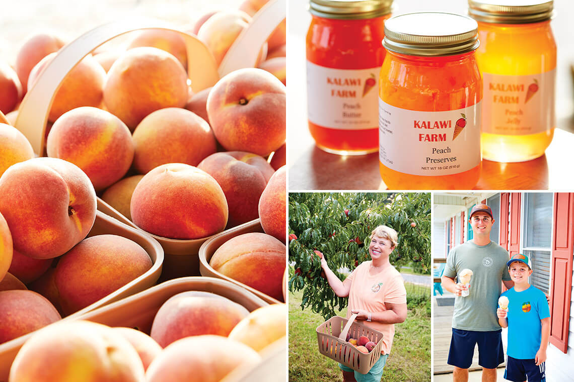 When Jan Williams was growing up, her mother made peach ice cream every Sunday when the fruits were in season. Now, this third-generation peach farmer offers homemade peach ice cream and other flavors — including 10 named for each of her grandchildren — at Ben’s Ice Cream at Kalawi Farm. At her produce stand next door, she sells 43 varieties of peaches, plus preserves and other produce. Williams, who was a teacher for 10 years before making the farm her full-time job, says that the business is in her blood.