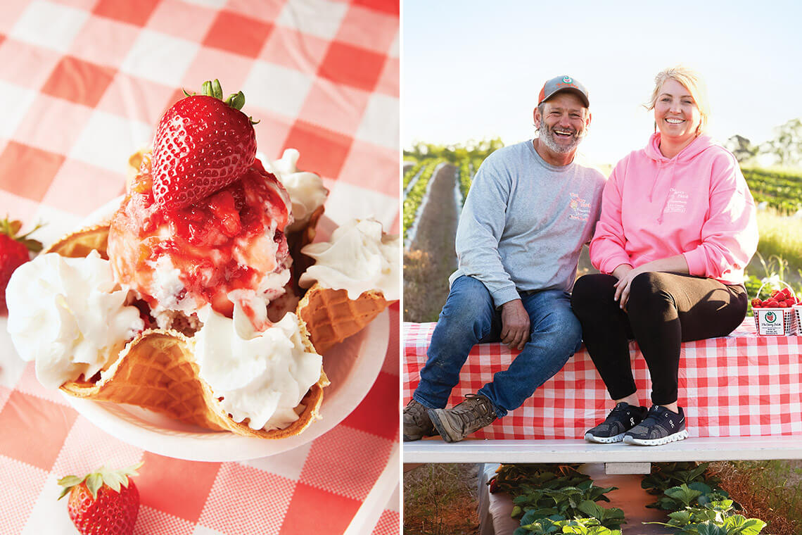 The Berry Patch owners Lee and Amy Berry freeze 6,000 pounds of strawberries each spring so they can offer their premium ice cream year-round. photograph by Stacey Van Berkel