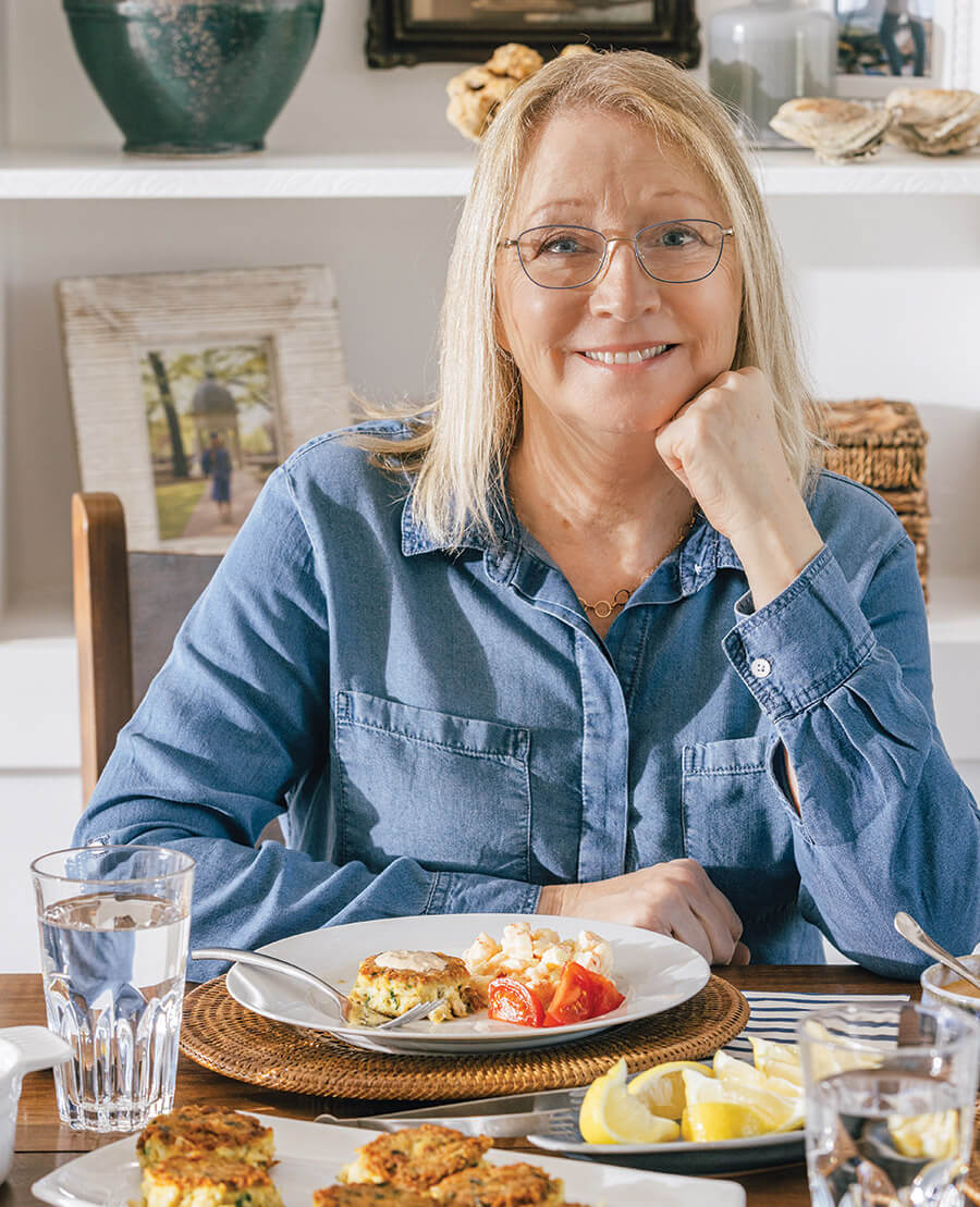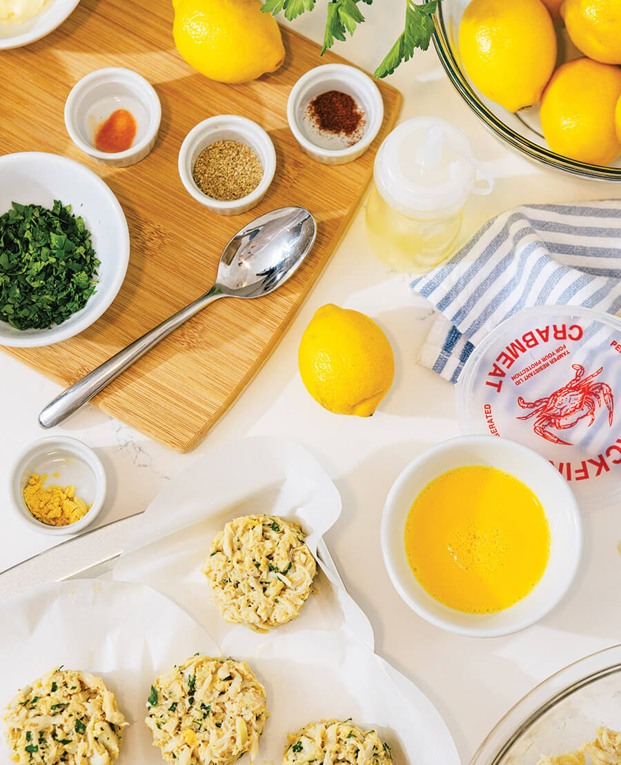 Taylor believed in letting local seafood shine. Her Deluxe Crab Cakes are long on crab and short on filler, with just 1½ tablespoons of cracker crumbs holding together a pound of North Carolina crabmeat. photograph by Baxter Miller