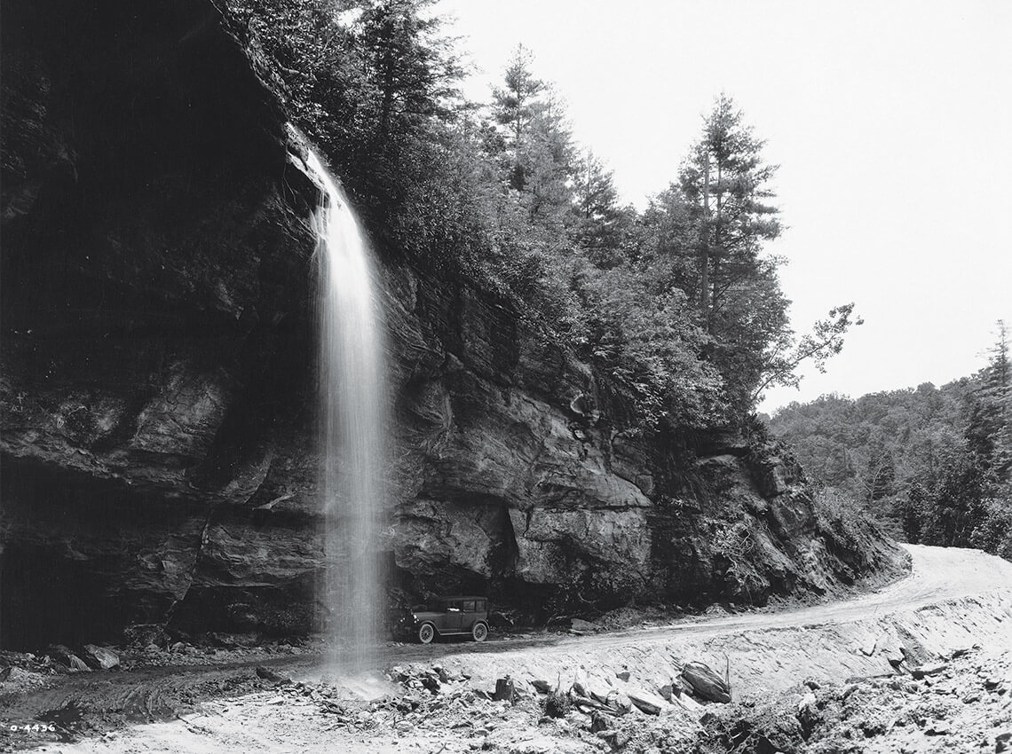 Masa himself shot an early, iconic photo of a car driving beneath Bridal Veil Falls. Photography courtesy of GREAT SMOKY MOUNTAINS ASSOCIATION/KEPHART FAMILY COLLECTION