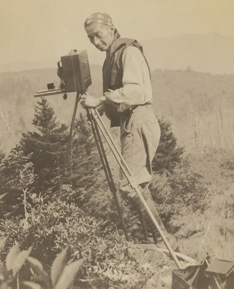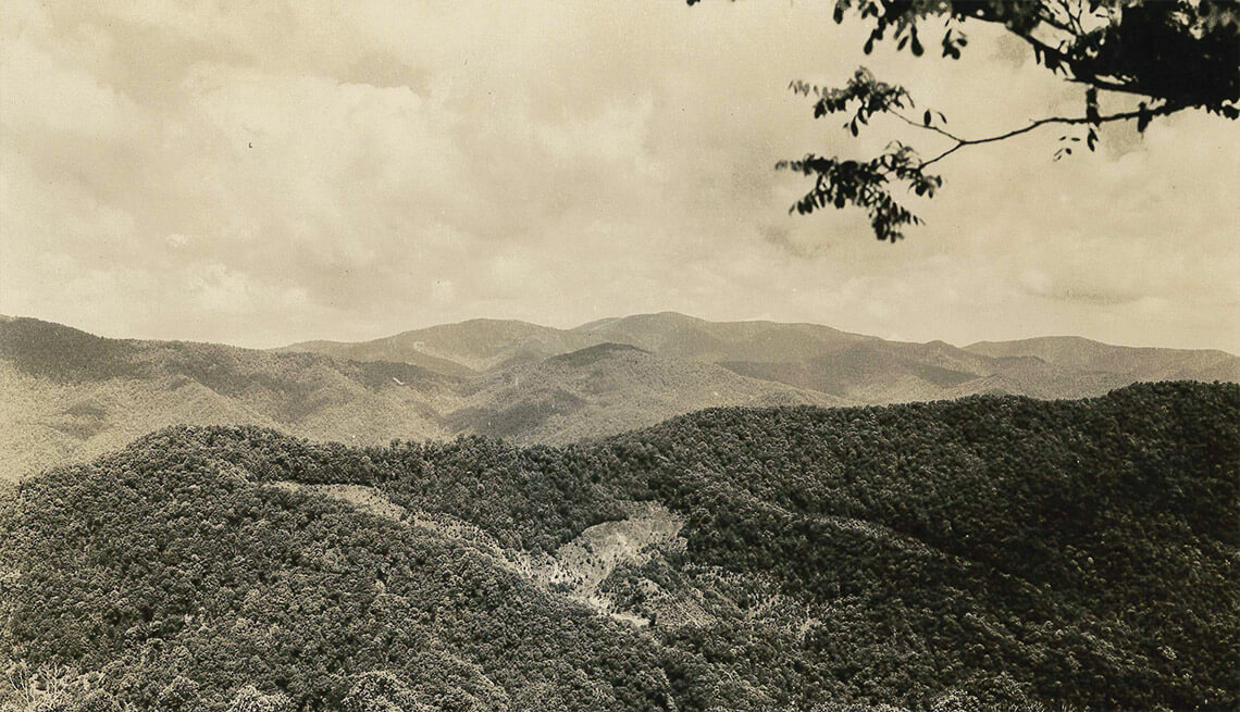 George Masa stood at the peak of Graybeard Mountain and looked east over a vast expanse of wilderness. Below, sugar maples, red spruces, Fraser firs, and American beeches were among the more than 100 species of native trees blanketing the mountain ranges. Birdsong from chickadees and juncos overlapped with the high-pitched calls of hawks and eagles. Salamanders slithered along the banks of creeks below, while foxes and bobcats stealthily tracked prey. Masa had set up his large-format camera on a heavy wooden tripod and waited patiently for just the right light to capture what his close friend Horace Kephart referred to as “an Eden still unpeopled and unspoiled.”