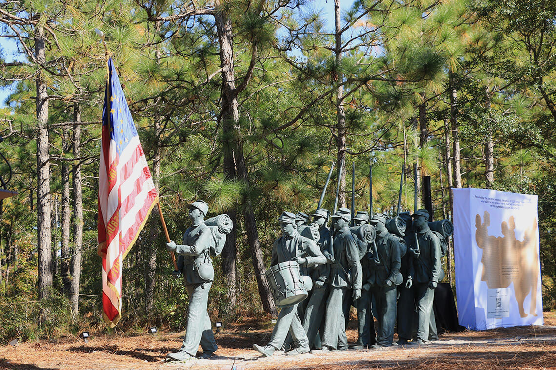 When the sculpture Boundless was unveiled at the Cameron Art Museum in November 2021, the virtually unknown story of the U.S. Colored Troops (USCT) and the Battle of Forks Road came to life. Created by North Carolina artist Stephen Hayes and cast from men connected to the troop, this bronze sculpture will be the focal point of the state’s first USCT Park.