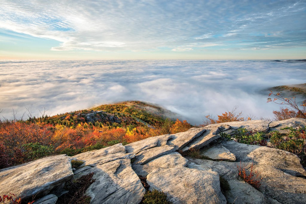 That’s the beauty of the High Country: You can choose your adrenaline level. Drop 1,200 feet in a single ski run down Sugar Mountain. Or drop into a rocker. Stroll a wide, historic carriage path at Moses H. Cone Memorial Park, breathing in the sharp tang of the white pines. Or climb Rough Ridge hand over hand, up and across slabs of rock like the bones of an ancient beast, until the world opens up in a sweeping panorama of the Black Mountains.