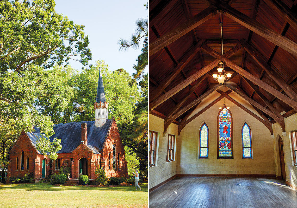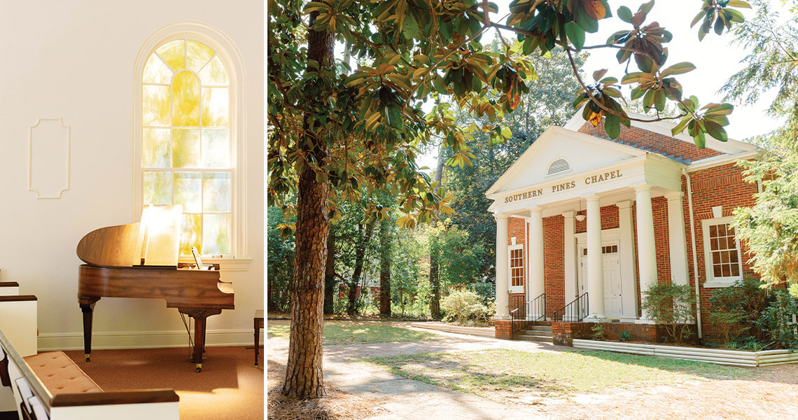 A cornerstone of the brick Colonial Revival-style Southern Pines Chapel is inscribed with the date 1928, the year that the church was built by members of its congregation. Today, the nondenominational chapel has no congregation, but owner Kathy Virtue allows meetings, Bible studies, and prayer groups from other churches to gather within its walls. “When [the chapel] turns 100 in five years, it will still be proclaiming the good news of the Gospel, right there in Southern Pines where it was created,” Virtue says. “I think that’s really special.”