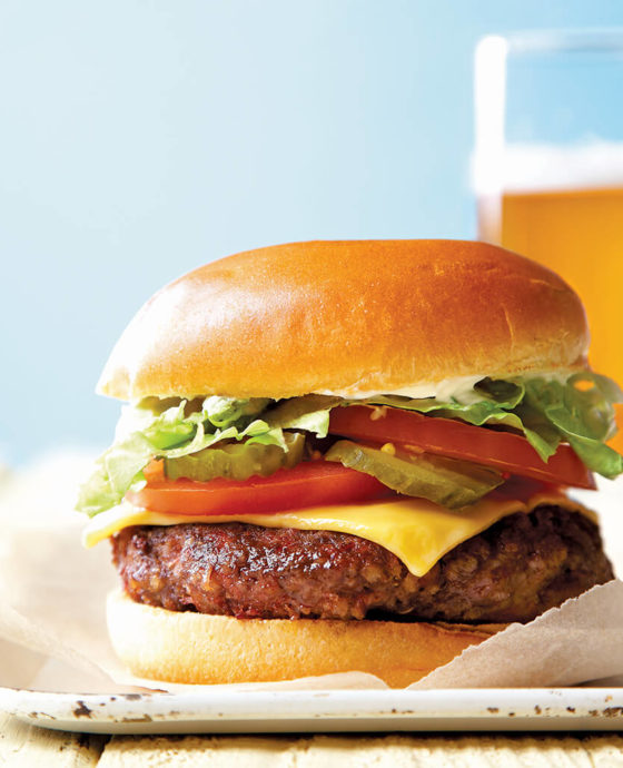 Place burgers on the high-heat side and cook for about 2 minutes on each side, or until well browned. Move them to the low-heat area and continue to cook for another 3 to 5 minutes, or until each burger has reached an internal temperature of 160°. Top with cheese, if desired, and let sit for 1 minute. Serve on buns and add your favorite toppings.