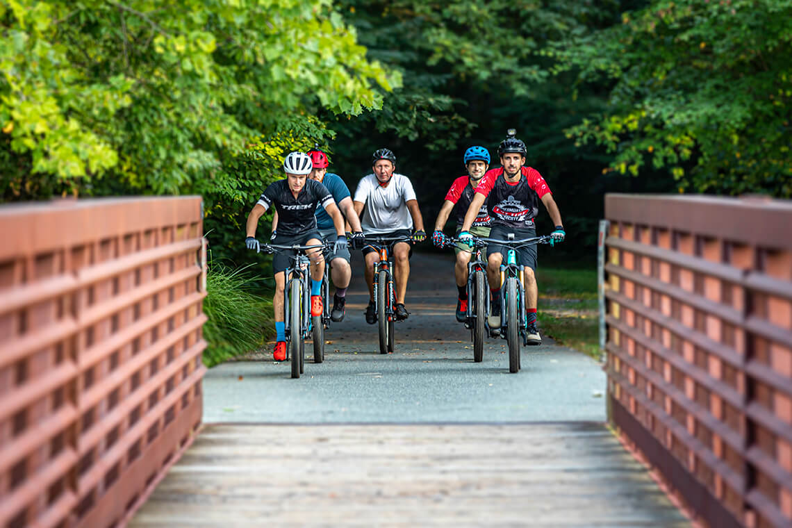 Zip across the H. Michael Weaver Pedestrian Bridge or slow your roll to take in the views overlooking Lake Brandt. photograph by Rob Landwehrmann
