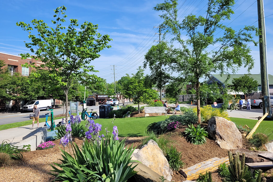 The Northern Passage runs from the “Meeting Place” gazebo to the “Woven Works Park” sculpture, two cornerstones that serve as the greenway’s northern anchors. Close to the center, LoFi Park, Joymongers Brewing Co., and Deep Roots Market draw people from all over the city. “I live in Fisher Park, so LoFi is just a few blocks from my house, so I use the greenway a lot,” Sanders says.
