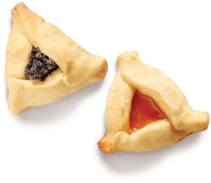 Roll the dough out onto a cutting board and cut into circles. Add a filling of choice to the center of dough circles. Press edges of dough circles to form three-cornered hats. Place on parchment paper and bake until golden, about 10 to 15 minutes.